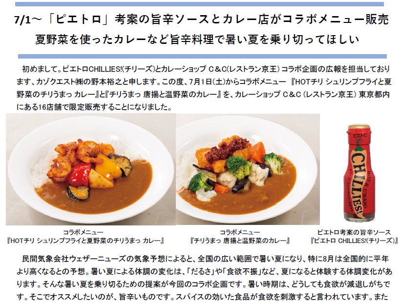 「カレーチェーン店とのタイアップを広く知ってもらいたい」との